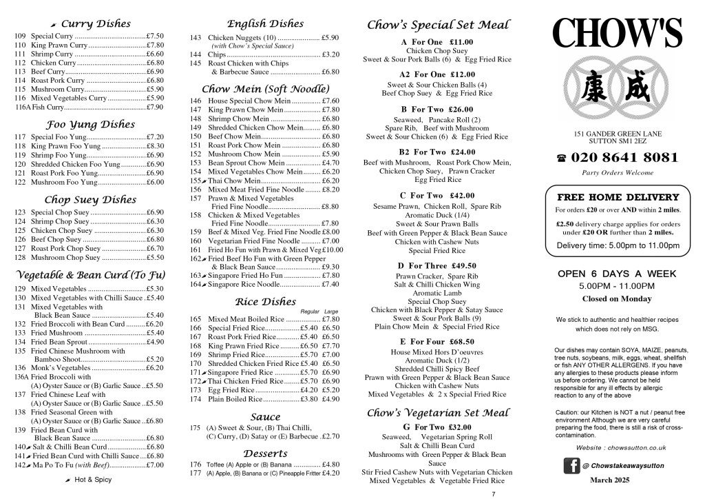 Our dishes may contain SOYA, MAIZE, peanuts, tree nuts, soybeans, milk, eggs, wheat, shellfish or fish ANY OTHER ALLERGENS. If you have any allergies to these products please inform us before ordering. We cannot be held responsible for any ill effects by allergic reaction to any of the above.